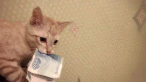 Предметы и подарки котик кушает