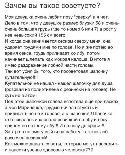 -Тогда будте так любезны, спросите у своего мужа, если у него такая хорошая жена, какого х*я, он уже месяц мою жену етит?!