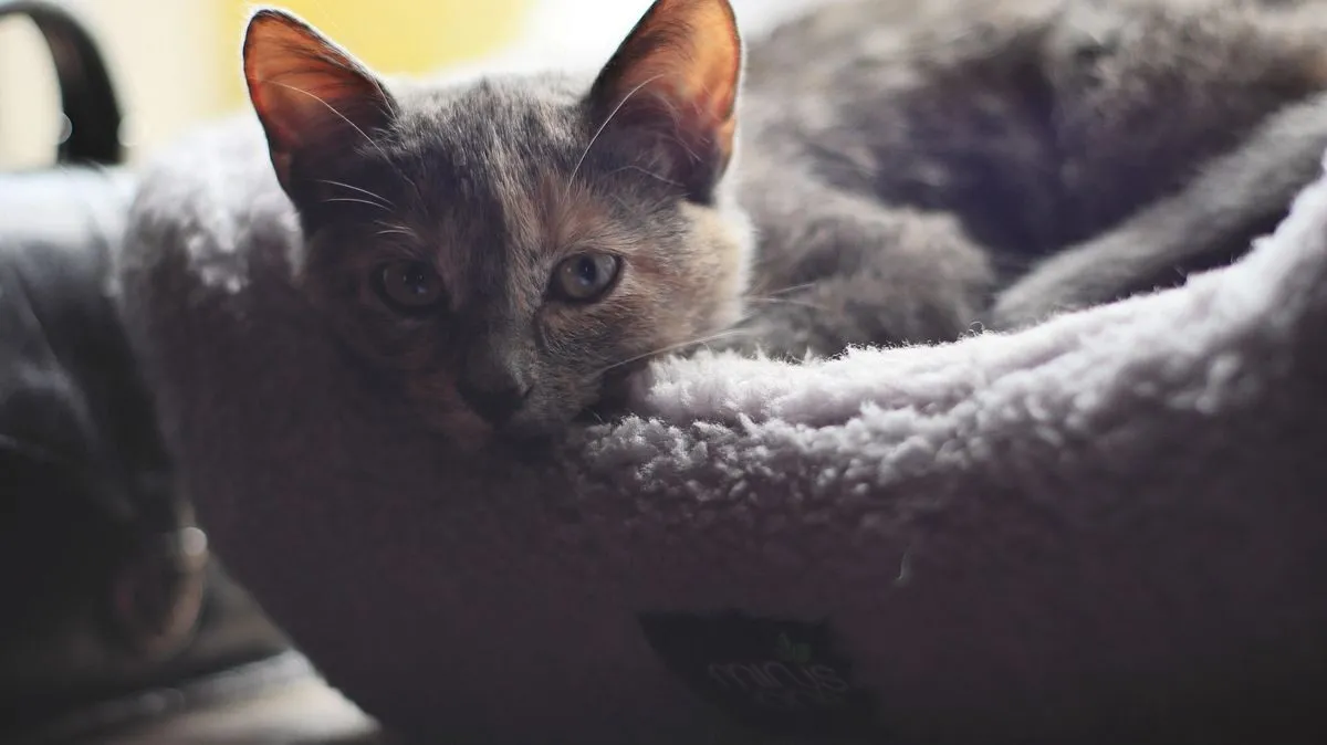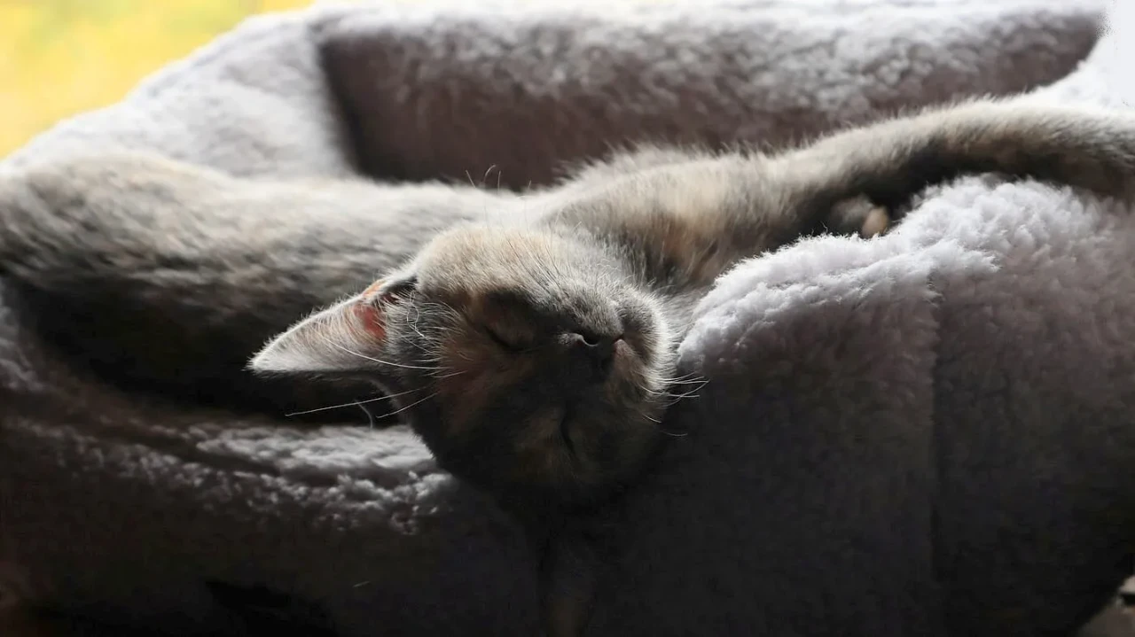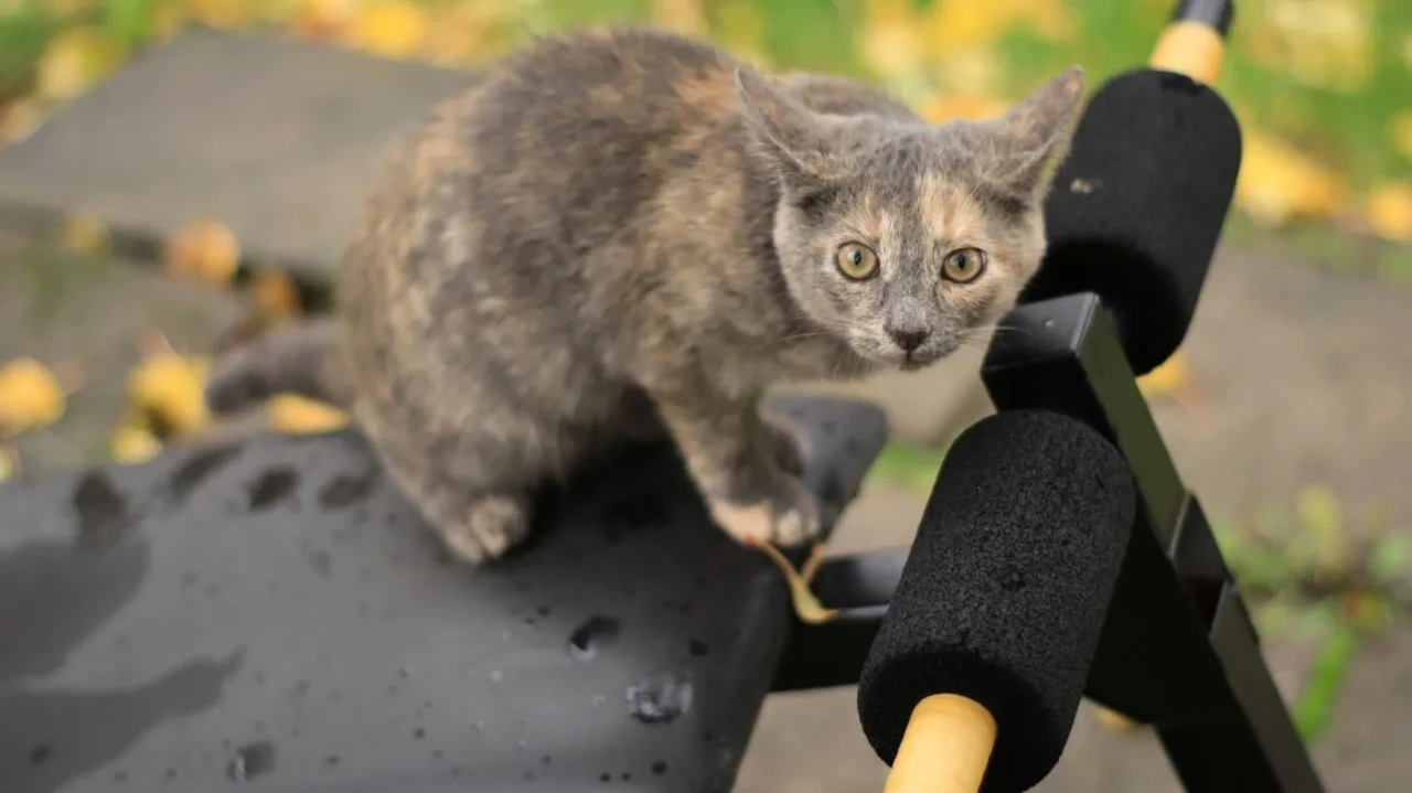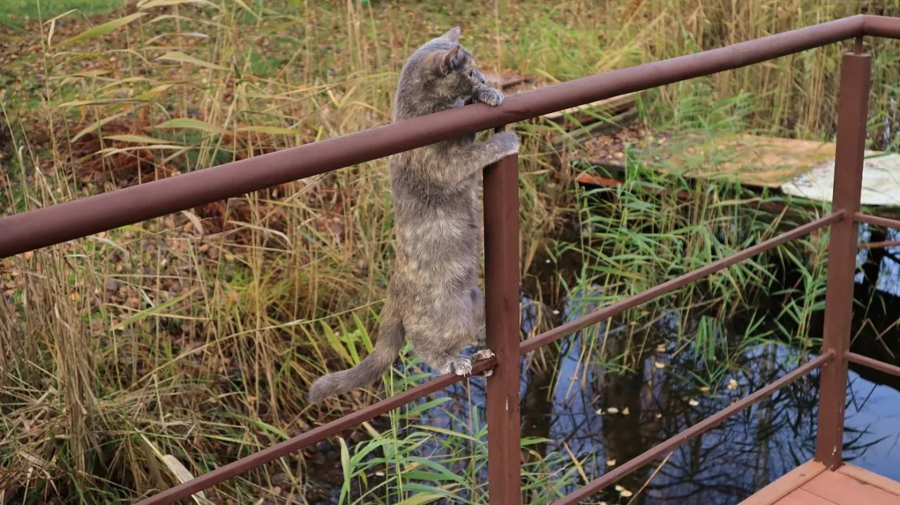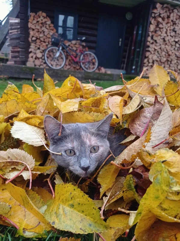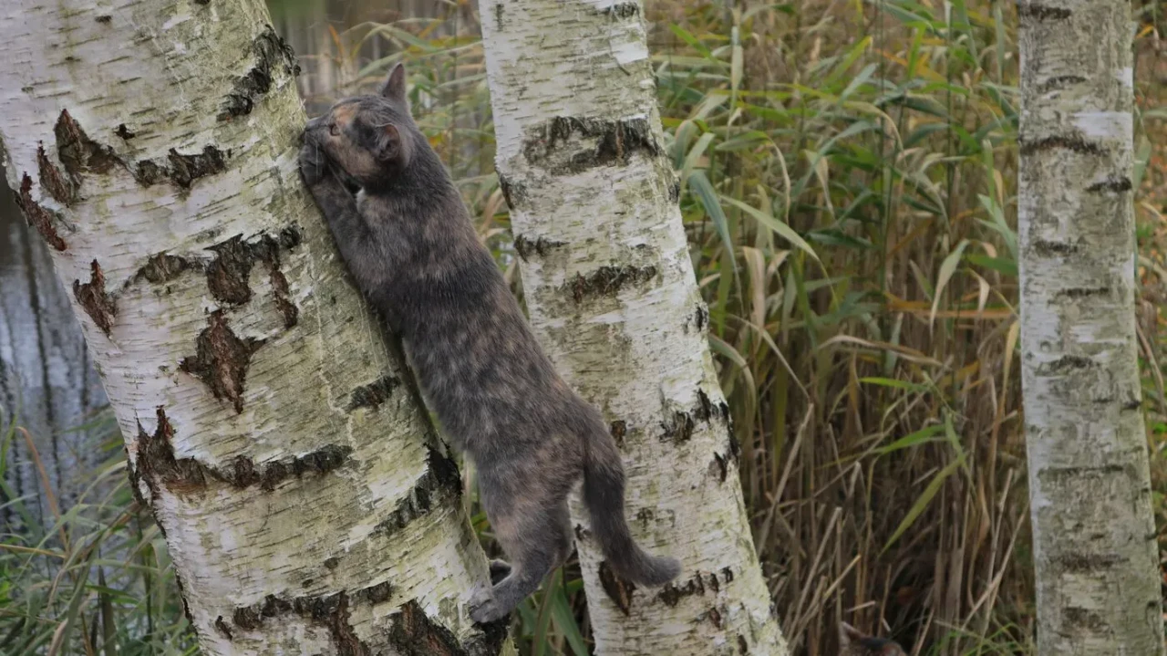 Луня, мелкая кошечка, но очень шустрая, ловкая - кот ее догнать не может.