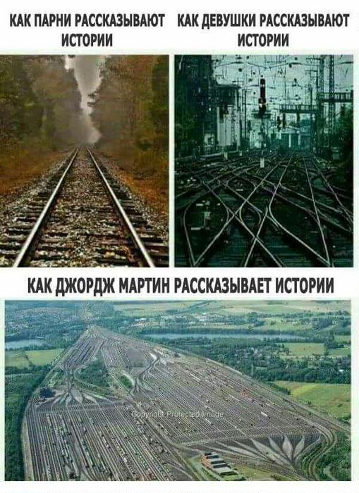 Седой Тирион нянчит кучу детишек, которых рожает ему дочка Серсеи. Изредка его начинают терзать угрызения совести. Тогда он достаёт из кармана фотографию Джона Сноу с Дейнерис, произносит со значением "если уж даже в моссовете!" и бодро топает к жене в спальню.